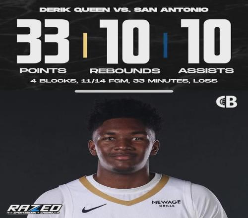 全場比賽,奎因15投11中,罰球13中11,砍下33分10籃板10助攻4搶斷。