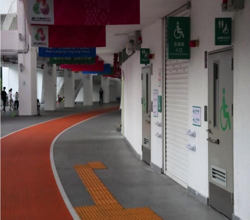 在深圳市體育中心,這里的臺(tái)階全部改造成平緩坡道,新增設(shè)的無障礙衛(wèi)生間、淋浴間、輪椅坐席、盲文指引與語音導(dǎo)覽地圖無縫銜接。龍崗國際自行車賽場(chǎng)的改造更具針對(duì)性,新增防滑坡道、熒光盲道與智能升降平臺(tái),搭配高對(duì)比度標(biāo)識(shí)與觸覺導(dǎo)航設(shè)計(jì),徹底避開了所有臺(tái)階障礙,為所有參賽運(yùn)動(dòng)員提供了貼心保護(hù)。