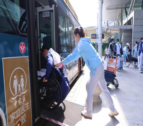 參加本次殘?zhí)貖W的殘疾人運(yùn)動(dòng)員在白云機(jī)場(chǎng)體驗(yàn)了無障礙出行的貼心服務(wù)。