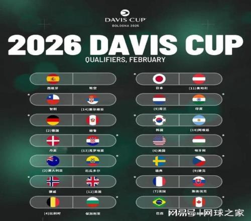 我們再來關(guān)注戴維斯杯。北京時間昨晚,2026賽季戴維斯杯資格賽的抽簽結(jié)果出爐,27支球隊將爭奪7個八強席位。衛(wèi)冕冠軍兼主辦國意大利隊直接入圍八強戰(zhàn),今年的亞軍西班牙隊則享受首輪輪空待遇。