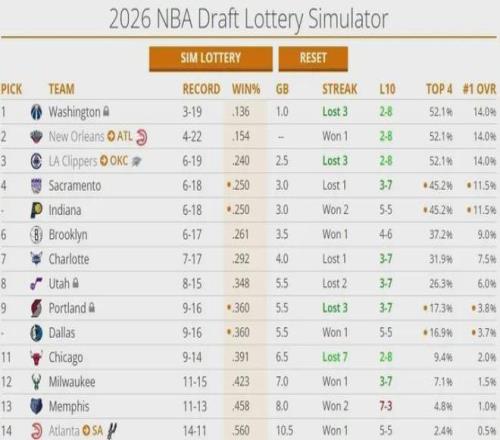 本場(chǎng)比賽過(guò)后,快船以6勝19負(fù)西部倒數(shù)第二&聯(lián)盟倒數(shù)第三,好消息是明年的狀元簽概率來(lái)到并列最高的14%,以及首輪簽前四概率提升至52.1%,壞消息是這個(gè)選秀權(quán)在目前以24勝1負(fù)傲視群雄的雷霆手里......