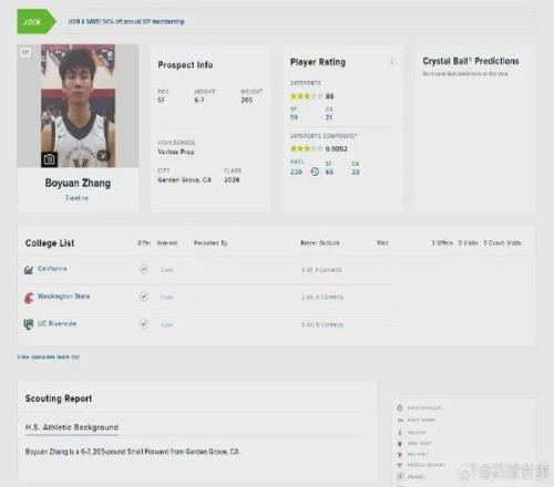 言歸正傳,目前張博源雖然只被評為三星高中生,評級88分,全美排名第59位的小前鋒,但只要繼續(xù)有著出色發(fā)揮,接下來被評為四星指日可待。