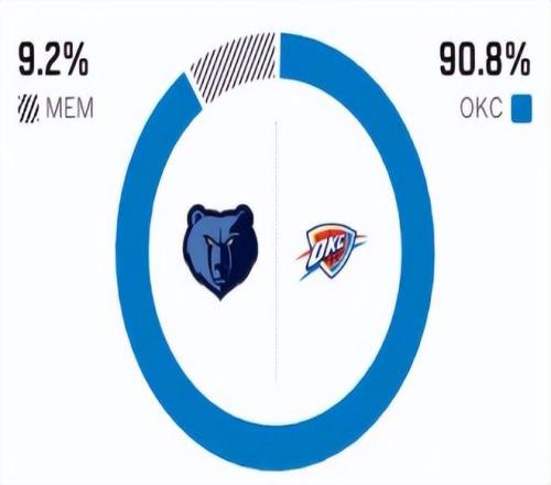 賽前,美媒ESPN對本場比賽進行了勝率預測,雷霆隊的勝率依舊高達90.8%,占據(jù)絕對上風,灰熊隊勝率則僅有可憐的9.2%,這對比還是挺刺眼的。