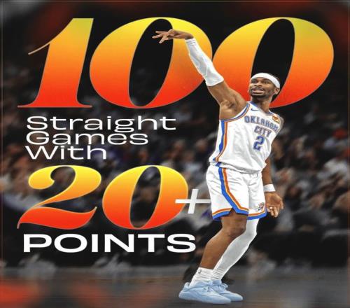 雷霆隊這邊,亞歷山大20投11中,罰球6中6砍下31分10籃板8助攻4搶斷1封蓋,已連續(xù)100場比賽砍下20+得分,創(chuàng)造NBA歷史第二神跡,僅次于張伯倫的126場;杰威得到24分6籃板2助攻。