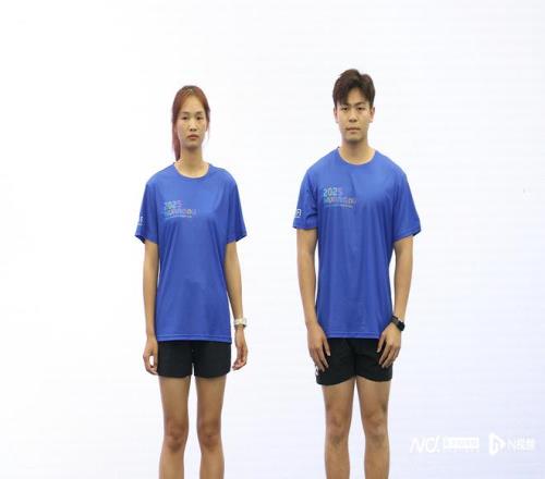 服裝正面印有動(dòng)態(tài)線(xiàn)條風(fēng)格的“2025 HUANGPU”字樣,線(xiàn)條靈感來(lái)源于精密芯片的電路紋理,彰顯了黃埔作為粵港澳大灣區(qū)科技創(chuàng)新引擎的定位。