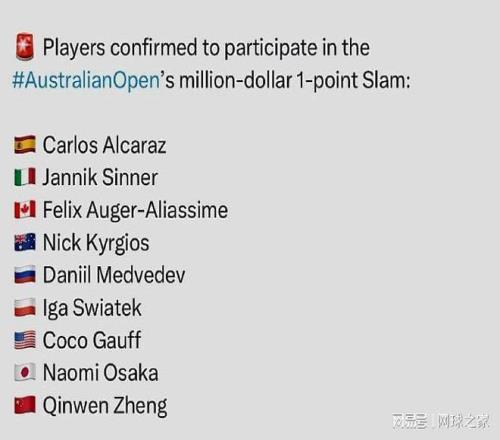 北京時間今晨,2026澳網(wǎng)官方宣布,中國球員鄭欽文確認(rèn)出戰(zhàn)新推出的“一球制勝”大滿貫。此次與小鄭同學(xué)一起確認(rèn)參賽的球員還有俄羅斯名將梅德維德夫、日本名將大坂直美和加拿大名將阿利亞西姆。至此,已經(jīng)確認(rèn)參賽的職業(yè)球員達(dá)到9人,包括阿爾卡拉斯、辛納、克耶高斯、斯瓦泰克、高芙,尚剩余13個席位待定。