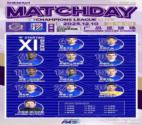 這是上海申花2025年的最后一場比賽,在聯(lián)賽爭冠收官階段飽受傷病困擾的他們終于集齊完整班底。在排兵布陣上,球隊全主力出戰(zhàn),路易斯、特謝拉和米內(nèi)羅的三叉戟領(lǐng)銜五外援首發(fā),傷愈歸隊的戴偉浚和謝鵬飛替補待命。