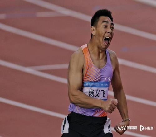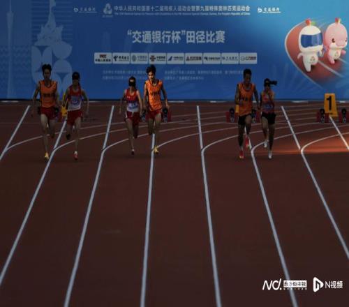 男子100米T36級(jí)決賽,廣東一團(tuán)運(yùn)動(dòng)員楊義飛奪冠。
