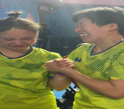 這份力量也來(lái)自她的搭檔。劉旭與周迪奮的默契,被同樣沒(méi)有右手的周迪奮形容為“太陽(yáng)與月亮”的互補(bǔ):“她的性格像太陽(yáng)一樣熱情,我可能更像沉靜的月亮,我們互相彌補(bǔ)。”周迪奮說(shuō),“我們打雙打,我負(fù)責(zé)保底,她在前面沖。我們就像乾坤一樣,她是乾卦,我是坤卦,是最能互相兜底的好搭檔?!?/p>