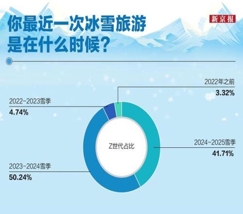 更值得關(guān)注的是,Z世代的冰雪體驗(yàn)呈現(xiàn)出近乎“壓縮式”的時間集中。《報告》顯示,在年輕人最近一次冰雪旅行中,2024年–2025年雪季占41.71%,2023年–2024年雪季占50.24%,兩者合計(jì)接近92%。換句話說,Z世代的冰雪記憶幾乎都發(fā)生在過去兩年——這批涌向雪場的年輕人,絕大多數(shù)是“爾濱效應(yīng)”催生的新玩家。